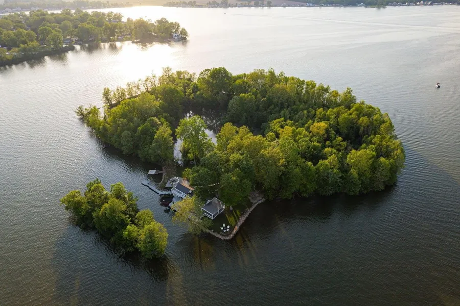 Experience unparalleled lakefront luxury living with this stunning turnkey island retreat. This property has been completely transformed with over $500,000 in improvements, boasting a fully renovated kitchen, completely updated bathroom, new flooring, custom lighting throughout, and a flexible layout with 4 rooms used as bedrooms, including den and rec room. Brand new plumbing, electrical systems, water systems and a backup generator. Step outside to your outdoor oasis on the newly built covered patio with a large television and built-in bar area. Enjoy breathtaking views from the expansive deck or the grand 10-person fire pit. Spanning almost 1 acre, this extraordinary property is nestled right on the water's edge, offering the ultimate convenience - your boat is just steps away providing direct lake access for boating, fishing, and swimming! Convenient access from one of the area's marinas just minutes away.