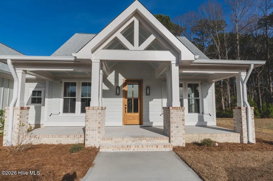 This coastal cottage could not be any cuter and the modern floor plan is designed with easy living in mind. ''Full Bloom'' is a new construction home that has everything you need and charm to spare. Elevate your everyday and trade flood insurance for peace of mind, this home sits 27' ABOVE sea level. The the exterior is light and bright with Hardie board and batten siding and an open porch gable that welcomes you home. Rock the day away on the wide front porch overlooking your landscaped yard, or relax on the back porch, a true extension of your living space. The stained wood front door brings you in to the great room that feels extra spacious with vaulted ceilings and a light color palette. Your guest wing is to your right and the owner's suite is on your left with a 12' walk-in closet, double vanity, freestanding tub and custom tile shower. You'd think you would have to give up something to get everything you want in a 1700sf home, but not with this plan, it's laid out perfectly for easy one-level living. You have a decent size entryway off the 2-car garage with access to your laundry room, powder room, storage and large pantry. Arlington Place offers premier amenities like a clubhouse, pool, sports courts, boat ramp, day docks, trails, boardwalk, parks, kayak center, creek docks, riverfront pier, lakes, onsite storage and neighborhood beaches on the riverfront and Pintail Lake. Full Bloom is ideal for those looking to enjoy an active, nature-filled lifestyle while still being able to retreat to a tranquil home. Estimated completion January 2026.
