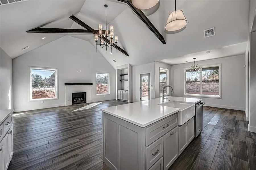 1% Credit on Loan Amount offered. Builder offering Closing and or Upgrade Allowance. New Transitional Home in Gated Community has 3 Bed, Study/Flex Room, 3.5 Baths, Bonus Room, 2nd and 3rd Bed Upstairs with Full Bath. Downstairs Bedroom with semi-private Bath. Beamed Ceilings in Living and Kitchen. Open floor plan from Great Room with Fireplace to Chefs Kitchen. Lots of Kitchen Counter Space and Cabinets, Quartz Counters, Deep Farm Sink, 5 Burner Gas Cook Top and Griddle, Oven with Air Fryer, Large 8ft Island Breakfast Bar with Farm Sink. Butler's Pantry Quartz counters, Cabinets and electrical for appliances plus a walk-in pantry. Private back yard with no neighbor view, Oversized Covered Patio, Cable, Gas Fireplace, Gas hook up For a Grill. Wood Tile Floors throughout Kitchen, Living Areas and Study. Your Owners Suite with Deep Soaking Tub, Dual Vanities and Make Up Bar. Master Closet ...