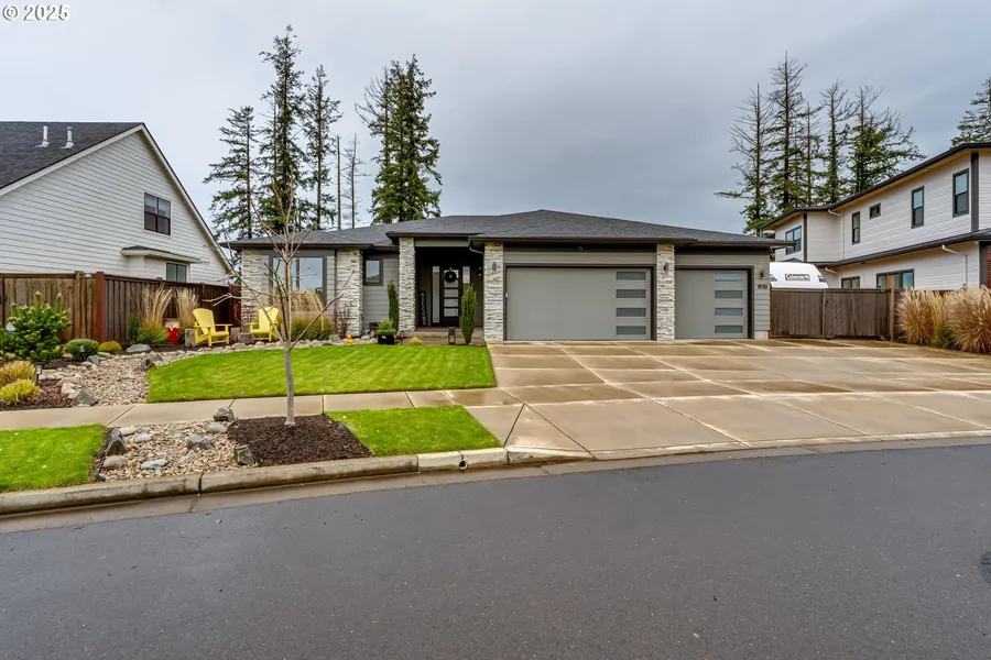Modern elegance meets everyday comfort in this stunning single-level home in highly desirable North Gilham. Designed for todays lifestyle, it features an open floor plan filled with natural light, high ceilings and hardwood floors. The chef's kitchen showcases a large quartz island, premium appliances, custom cabinetry, and a walk-in pantry perfect for entertaining. The primary suite located at one end of the home offers peaceful separation from guest quarters or home office on the opposite side of the home. The large private backyard features a covered patio, beautiful landscaping that overlooks a serene setting with mountain views. A three car garage provides ample storage for all your PNW adventures and just outside is a large RV parking space. Close to top-rated schools, parks, shopping, and dining-this home defines style, comfort and convenience.