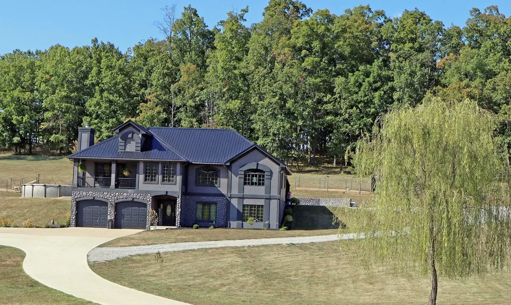 Outstanding design with incomparable beauty, incorporating recent quality updates, with a bright & airy charm. From the fabulous entertainment areas on both levels of the home, to the peaceful natural beauty of the back yard Patio & 3.54 acre rolling property, this expansive residence offers the sophistication & comfort you've been looking for. The home features 3,500 Square Feet of magnificent living space, 5 Bedrooms & 3 Full Baths, including a luxurious Owner's Suite with 2-sided fireplace & remodeled luxury Bath, spacious formal rooms, updated gourmet Kitchen with new quartz counters & more. The home's unique design features two walk-out areas of living space, both with covered parking & the ease of separate driveways & entries. The Lower Level features 3 Bedrooms & 1 Full Bath and includes a huge multi-purpose Family Room with home theater, stacked stone fireplace & plenty of space for entertaining, plus access to the 2 car attached Garage with storage. The Upper Level is outfitted with abundant space for family living with open design Living & Dining Rooms, Kitchen with Eating Area & a fabulous Hearth Room with floor to ceiling stone fireplace. Primary Suite, with walk-out to the Patio, plus a second BR & Full Bath complete the Upper Level layout. The outdoor living space offers ample space for entertaining & activities. The expansive textured concrete Patio includes an above ground pool, hot tub, stacked stone fireplace, new 2 vehicle Carport & an adjacent Shed for chickens, etc. There is an 80x40 detached 4+ car Garage with huge space for vehicles, workshop, storage & more. With additional amenities includes an Upper Level balcony style Deck, washer/dryer hookups on each level, freshly painted interior, new Roof, new hardwood flooring on Upper Level, & much more, this home is well-equipped to meet any lifestyle need. Impressive space, style & location, the very best of country living.
