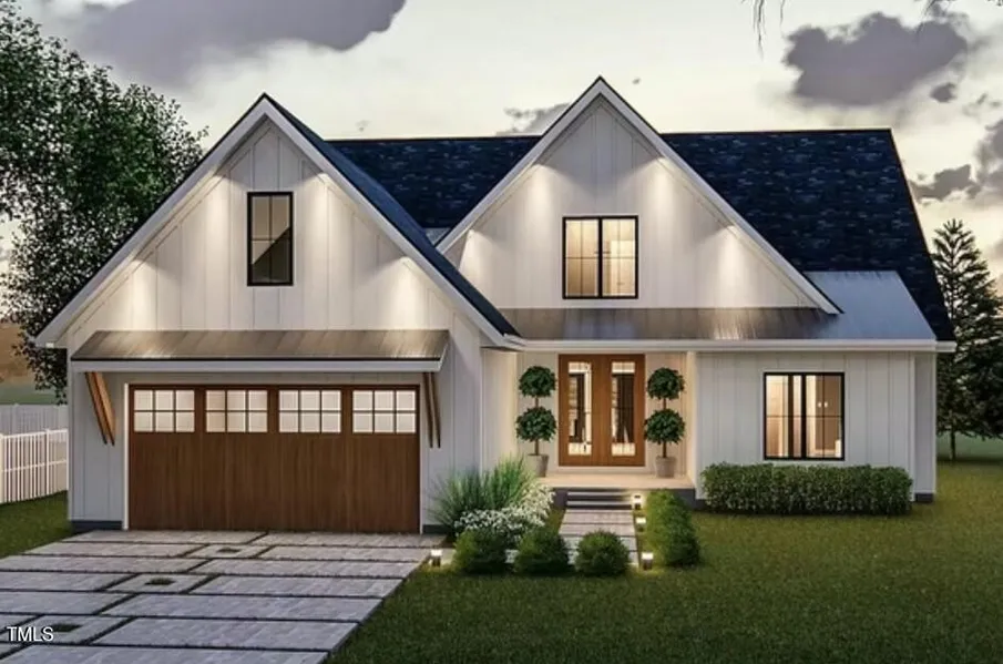 The King Plan by CB Moore Construction: A stunning blend of frame symmetry and modern farmhouse charm. This home features double front doors opening to a spacious, welcoming foyer. The expansive great room is complemented by a cozy fireplace, creating a perfect space for gathering. Enjoy outdoor living with a back covered patio, also featuring a fireplace. The master bedroom, located on the main level, is a luxurious retreat with beams accenting the ceiling. It boasts a separate tub and walk-in shower, along with dual master closets leading directly to the laundry room for added convenience. The kitchen is designed for both style and functionality, with an open concept to the dining room and a large kitchen island perfect for meal prep or casual dining. A scullery off the kitchen offers additional storage and workspace. Upstairs you will find a gracious loft leading to the 3 secondary bedrooms. Additional features include a mudroom with a bench, leading to the 2-car garage. All of this is set on a generous .92-acre lot in the charming Village of Old Spring Hope. This beautiful new construction is sure to impress! Buyer may choose lot location.