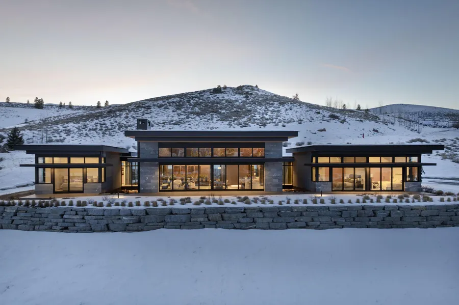 Stunning single-level Mountain Modern home with exceptional privacy and Trail Creek mountain views. This 3BR/3.5BA residence designed by Hollis/Rumpeltes Architects, features vaulted ceilings, two dedicated offices, one of which can easily be converted to a fourth Ensuite bedroom, plan available in documents. Seamless indoor-outdoor living with oversized telescoping doors opening to extended paver patios. High-end finishes throughout, including soffit lightning, electronic shades and distinctive Ocean Peral Sawn flagstone siding. Oversized 2-car garage provides ample storage. This property is a must-see to fully appreciate its quality and setting.