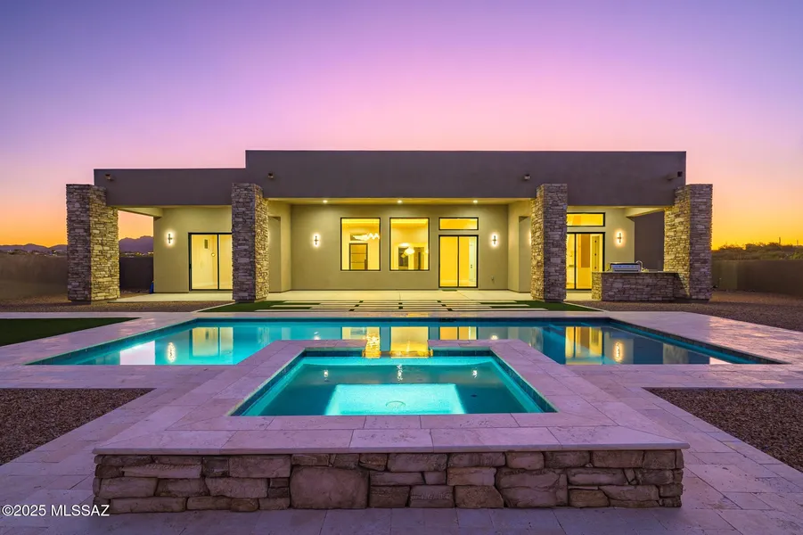 Welcome to this brand new construction located on Tucson's west side, offering 3,338 SqFt of thoughtfully designed living space in a gated community. This 4 bedroom, 4 bathroom home features a 3 car garage, a fireplace, and high end finishes throughout. The open layout is ideal for both daily living and entertaining. The backyard is built to impress with a pool, spa, and built in outdoor grill, all set against incredible mountain views. Clean lines, quality craftsmanship, and attention to detail are evident throughout the home. A rare opportunity to own new construction with resort style outdoor living in a private, gated community.