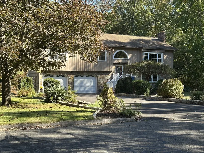 Welcome home to this stunning turnkey residence where comfort meets modern style. Set back from the street on a beautifully landscaped lot, this bright and spacious home offers sun-filled open spaces and thoughtful design. The living room features cathedral ceilings with charming wood beams, a dramatic picture window, skylights, and hardwood floors. The brand-new kitchen is a showpiece with granite countertops, an oversized island, tile flooring, abundant cabinetry, and a beautiful cut-out overlooking the living area. Natural light pours through an impressive window above the front door and into the sunny four-season sunroom with French doors leading to the deck. The main bedroom suite includes a full bath with shower and walk-in closet. The renovated main bath shines, with two additional bedrooms upstairs and a fourth on the lower level. The fully finished basement offers a half bath, convenient laundry and French doors to a patio and inground pool. Outside, enjoy a private fenced yard, oversized shed, level lawn, and two-car garage with ample parking. Additional features include pull-down attic storage, central air, and a heated basement. Move-in ready and designed for modern living, this home is the perfect blend of elegance, comfort, and functionality.