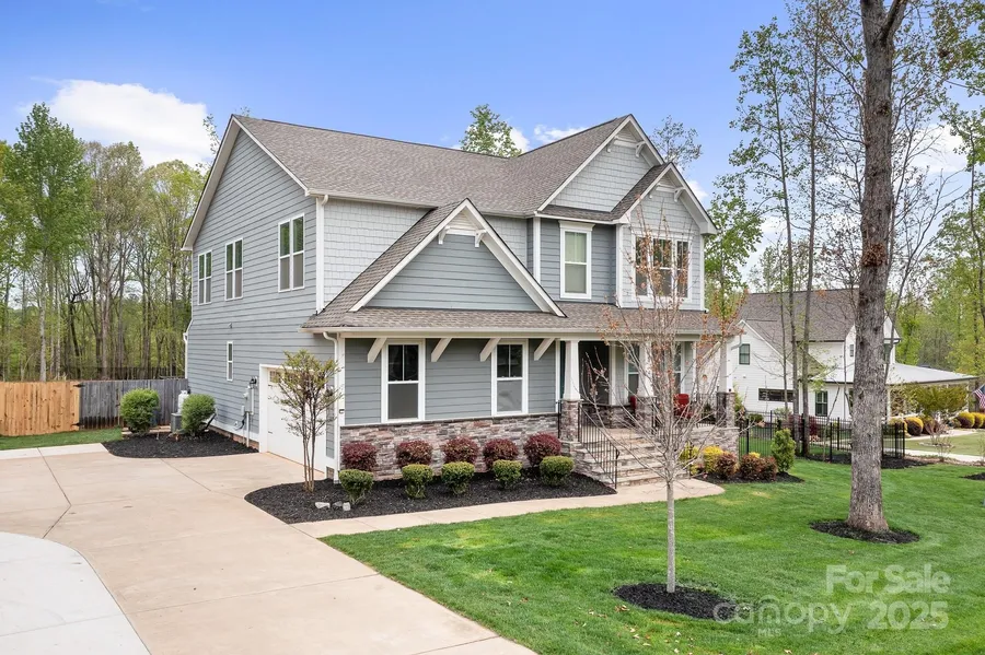 NO HOA, ROOM FOR A POOL, MOORESVILLE GRADED SCHOOLS, COUNTY TAXES This impeccable 5 bedroom home on 1.2 acres of level land, situated on a quiet cut de sac and loaded with upgrades including a beamed ceiling in the kitchen and breakfast area, 9 foot ceilings, 8 foot doors, 6 foot windows, crown moulding, butler's pantry, irrigation system, water filtration system and fully fenced backyard. Recently added fully permitted sunroom edition with huge cool technology deck spanning the length of the house for entertaining outdoors or quiet evenings taking in the sunsets. Upstairs also has 9 ft ceilings, three spacious secondary bedrooms all with walk in closets, a separate bonus room and primary suite with sitting room, soaking tub, rain head shower and large walk in closet. Main floor with 5th bedroom and full bath perfect for guests or multigenerational living. Remainder of 10 yr structural h...