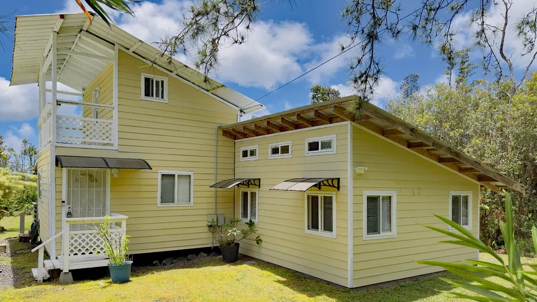 Nestled in the embrace of the 'Ohi'a rainforest, this charming one-bedroom home offers the perfect opportunity for sustainable, off-grid living in the heart of Fern Acres - and it's priced below assessed value! Though un-permitted, this thoughtfully constructed home features an open-concept living space with a cozy step-down bedroom on the main floor. Upstairs, a loft opens to its own private, covered lanai with serene views of your personal park-like garden. Grow, Gather & Thrive You'll be surrounded by a food forest bursting with tropical abundance, including: - 'Ulu (breadfruit), Jackfruit & three types of Avocado - Two Coffee varieties, Cacao, Papaya, Starfruit & Wi Apple - Abui, Oranges, Tangerines, Brazilian Plum & Surinam Cherry - Pineapples & even your own Ice Cream Bean tree Off-Grid Infrastructure Includes: - 10 solar panels (300 kWh) with two 24V 100Ah lithium batteries - 1,500-gallon catchment tank with UV filtration - New On-demand gas water heater - Propane range and new Vissani refrigerator - Tongue-and-groove finishes & cedar-lined closet in the bedroom Exterior Features: - 8' x 24' covered lanai with solid wood bar for entertaining - Chicken coop & shade house with separate water catchment - 20' x 20' covered carport - 8' x 10' composite storage shed - Covered farm equipment areas (20' x 20' and 15' x 30') Utilities: - HELCO power available at the road (no SSPP!) - According to Hawai'i Telcom, fiber internet is available This property is perfect for anyone seeking privacy, productivity, and peace - whether you're dreaming of homesteading, going off-grid, or simply waking up surrounded by nature. See video: