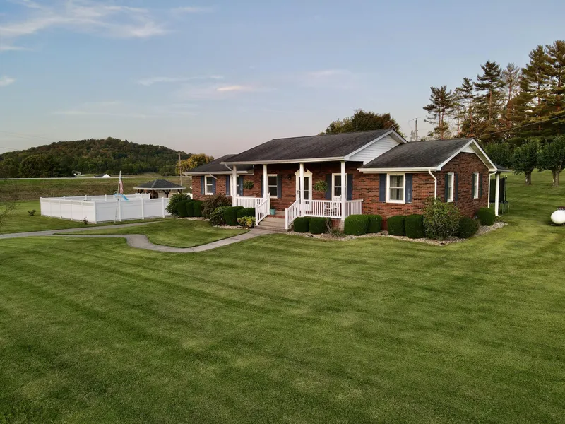 Seller is offering up to $9,600 in seller concessions toward a 2-1 interest rate buydown, subject to lender approval. This incentive may help reduce the buyer's interest rate during the first two years of the loan. Buyers are encouraged to consult with their lender for program details and eligibility. Absolutely Beautiful Brick Home with Finished Basement! This stunning 4 bedroom, 3 bath home offers space, style, and so many extras! The main level features 3 bedrooms and 2 baths, including a primary suite with a tiled shower. The living room boasts a cozy propane fireplace, while the kitchen is complete with stainless steel appliances (to stay), granite countertops, and a breakfast area. A large formal dining room, along with hardwood and tile flooring in the main living areas and carpet flooring in the bedrooms, adds both comfort and elegance. The finished basement includes an additional bedroom, a full bathroom, a spacious family room with a propane fireplace, a small kitchen, a huge office (or potential 5th bedroom), and a separate utility room. Situated on 1.6 acres just off Highway 150, the exterior is just as impressive-featuring a beautiful in-ground pool with diving board and slide, outdoor brick firepit, and privacy fencing that encloses both the pool and firepit areas. The property also includes multiple garages: a 36x28 detached garage with concrete floor, electricity, and bathroom, plus a 24x24 detached garage with electric and concrete flooring. Enjoy the outdoors with a welcoming covered front porch, and an expansive covered back porch stretching over 60 ft. with ceiling fans-perfect for relaxing or entertaining. A long concrete driveway, mature landscaping, central heat and air, and a sitting area with swings complete this amazing property. This home truly has it all-indoors and out!