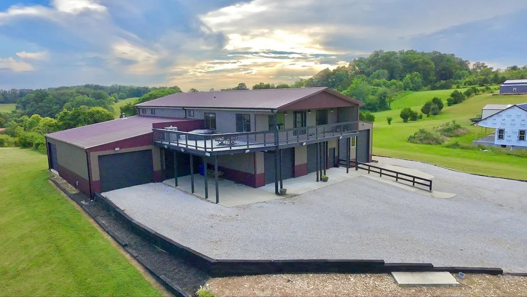 Beautiful 2 acre country setting and spanning over 9,000 square feet, this Barndominium combines spacious garage areas with elegant and comfortable living spaces.! It features 3 bedrooms, 3 full baths, and a kitchen equipped with stunning custom cabinets, a 10' butcher block island, and top-of-the-line appliances. The home is adorned with beautiful tongue and groove pine, impressive steel beams, and no carpet. The primary suite features an oversized tiled shower and is connected to a spacious laundry room. The expansive garage with 9 doors of various sizes is a standout, enhanced by spray foam exterior walls, a hot blast wood stove, additional laundry, 2 50-gallon water heaters, and a high-efficiency HVAC. This home is bursting with possibilities-perfect for a family residence, an Airbnb rental, or a convenient spot to park your RV, store all your toys and entertain! Minutes to Cumberland Point boat ramp on Beautiful Lake Cumberland!