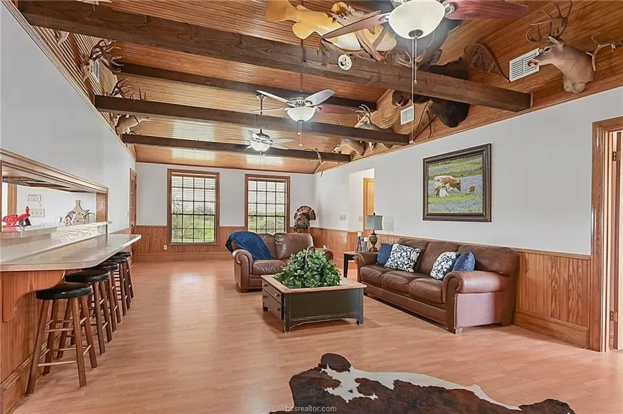 Barndominium home with the best of both worlds, A house above and stalls below, 3 car carport that you can drive through the full barn or there is enough space to make the house larger and take out the stall. There is so much potential, You are just minutes from the Aggieland expressway for easy access off and on, But still far enough away to have piece and quite, (ADDITIONAL 10 ACRES IS ALSO FOR SALE) The property is fenced and crossed fenced, There is a barn 60x80 with a guest house with a 1 bed- 1 bath and easily to add on, there is a pond on each tract of the property. There are 5 Stall with a dirt floor, 3 foaling stalls and 2 regular stalls, With water and electric Tac room and plumber for another bath, The property has cattle pen, Well house. 3 car carport that you can drive through the full Bardominium, RV Hook ups /parking behind the shop with Elec, AG Exp. Additional 10 Acres for sale MLS# 25002912