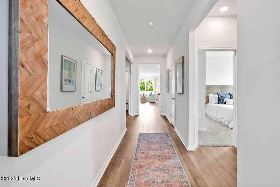 The Cali is our most popular one-story, 4-bedroom home, featuring an open-concept living area that leads to a kitchen equipped with Stainless Steel Appliances, including a smooth-top electric range, microwave, and dishwasher. As you enter, you'll find three bedrooms with a shared bathroom, while the Primary Bedroom, off the living area, offers a private ensuite bathroom. This home combines a functional layout with quality finishes, making it a great choice for those seeking a modern ranch-style design. Enjoy the covered porch perfect for entertaining and enjoying the Carolina evenings. Home Is Connected(R) Smart Home Technology is included in your new home and comes with an industry-leading suite of smart home products including touchscreen interface, video doorbell, front door light, z-wave t-stat, & door lock all controlled by smartphone app! Located just south of Wilmington with easy access to I-140 & Hwy. 17, you'll love the short commute to all the areas recreation and attractions. Love shopping and dining? You'll find all the popular shops and local eateries just a short drive to the heart of Leland & downtown Wilmington. Homeowners will enjoy a pavilion with resort style swimming pool, hot tub, fire pit, multi-game sport court, sand volleyball, and recreation field. Come see this brand new, Brunswick County new home community!