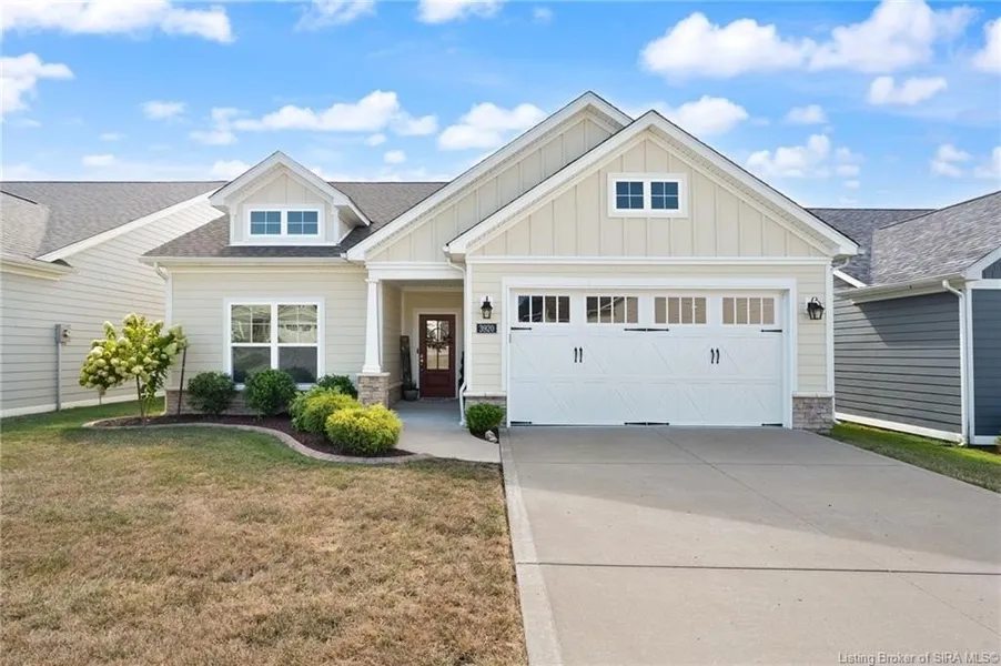 WELCOME to one of New Albany's finest patio home communities! Gorgeous and spacious with many upgrades, this one-level living home features a pretty foyer with wainscoting leading to an open great room, dining area and granite kitchen with a large island bar. Stainless appliances stay. There's an owner's suite with a private bath featuring a custom tile walk-in shower and oversized double vanity. There's also a large walk-in closet. BR 2 is a good sized room with double closet and BR 3 could be used as a home office, formal dining or hobby room. The upgraded luxury vinyl plank runs throughout. New roof in 2025 and new landscape curbing. 2 car garage, deck and covered entry. No smokers have ever lived here. Very well kept and ready to sell! Sq ft & rm sz approx.