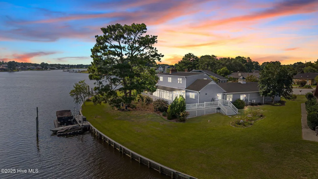 $5,000 closing credit! Discover your waterfront oasis within the exclusive, 24-hr guarded & gated community of Fairfield Harbour! This impeccably updated and meticulously maintained home offers nearly half an acre of prime waterfrontage, inviting you to embrace the coastal lifestyle. Upon entering, the foyer ushers you into a home where every detail has been thoughtfully considered. Retreat to the first-floor primary suite, a luxurious sanctuary featuring a charming fireplace. French doors leading out to your waterfront pergola, seamlessly blending indoor comfort with outdoor serenity. The exquisite en-suite bathroom invites indulgence with a designer walk-in shower, jetted tub, dual vanities, and The heart of the home is the inviting living room, featuring an elegant fireplace framed by custom bookcases, creating a warm and open ambiance. Seamlessly transition into the formal dining area and a true chef's kitchen where you'll find custom cabinetry, an induction range, a built-in microwave, and a stunning tile backsplash that beautifully reflects the captivating water views from the window. Also on the main level is a versatile room, perfect for a study, extra bedroom or adaptable to your specific needs. Off the dining room, your private escape awaits in the sunroom. This tranquil space overlooks your composite deck and the sparkling, navigable waters. Picture yourself unwinding, watching egrets and herons gracefully glide at sunset, as sailboats paint a picturesque scene. Upstairs, you'll find generous storage options and three additional bedrooms, one featuring an ensuite bath. Every upstairs window is perfectly positioned to capture those water views. Oh the possibilities with your three-car heated and cooled garage, upgraded 30-foot dock and impressive 150 feet of bulkhead. Step directly from your home onto your boat and embark on adventures along the Intracoastal Waterway, exploring wherever your heart desires! This is more than a home; it's a lifestyle!