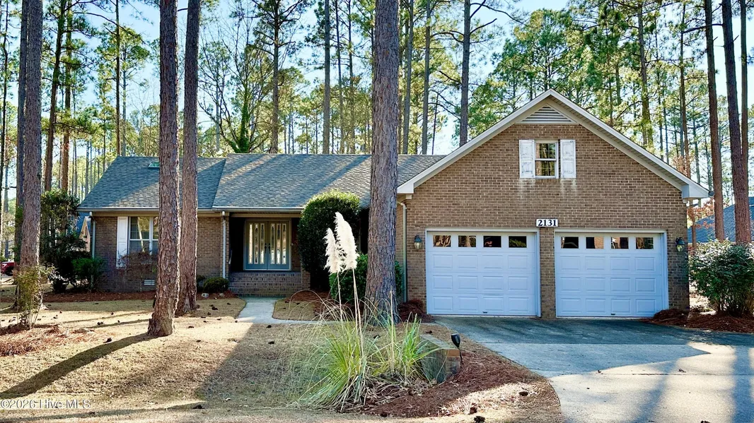 Located in the desirable waterfront community of Fairfield Harbour, this brick home sits on a spacious 0.389-acre corner lot and offers a thoughtfully designed single-story layout with 2,310 heated square feet of comfortable living space. The 3-bedroom, 2-full-bath home is surrounded by mature pines, providing privacy and a peaceful setting while remaining close to town amenities. The home features an expansive living area with ample room for multiple seating arrangements, ideal for entertaining or relaxed everyday living. The spacious den showcases tile flooring and a gas log fireplace as a warm focal point. Sliding glass doors on one side of the den open to a bright, glass-enclosed porch, while doors on the opposite side lead directly to the back deck. The deck spans the entire rear of the home, offering exceptional outdoor living and entertaining space. A formal dining room adds elegance and is highlighted by a beautiful crystal chandelier, creating an inviting setting for gatherings and special occasions. The primary bedroom is generously sized and designed for comfort and functionality, with sliding glass doors providing direct access to the back deck. Mirrored doors lead to a large vanity area, a separate shower and private toilet room, and a spacious walk-in closet, creating a true suite-style retreat. The two additional bedrooms are located on the opposite side of the home in a split floor plan, offering privacy for guests or family. These bedrooms share a separate hallway with a full bathroom conveniently situated between them. A central hallway includes a laundry closet and provides direct access to the attached two-car garage. Stairs from the garage lead to a large room above, ideal for a workshop, hobby space, or additional storage. Additional features include a central vacuum system and durable brick construction. With generous living areas, functional design, and serene surroundings, this home offers a comfortable Fairfield Harbour lifestyle.