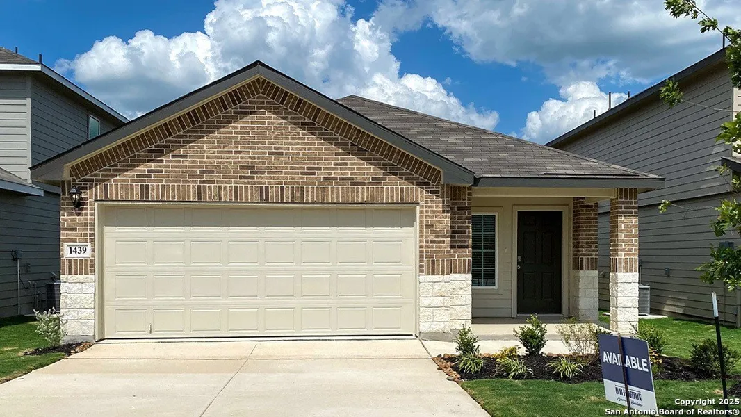 Introducing The Caroline plan, a stunning one-story home featured at Winding Creek in New Braunfels, TX. The Caroline is sure to impress with its classic front exteriors, 3 bedrooms, 2 baths, and 2-car garage. An elongated foyer welcomes you into an open concept kitchen, dining area, and living room, perfect for entertaining. This home's kitchen includes shaker style cabinetry, quartz counter tops, stainless steel appliances and a spacious kitchen island with a deep farmhouse style single basin sink. The main bedroom is located right off the living room and features a semi-vaulted ceiling and an attractive ensuite bathroom. You'll enjoy getting ready every day with plenty of bathroom space and modern bathroom features including quartz countertops, shaker style cabinets, a tiled walk-in shower and spacious walk-in closet. If privacy is your top priority, this ensuite bathroom comes standard with a separate water closet. Every bedroom has quality carpet, a closet, and windows for plenty of natural lighting. Whether these rooms become bedrooms or other bonus spaces, there is sure to be comfort and functionality. Additional features include a back patio that overlooks a fully landscaped and irrigated yard, sheet vinyl flooring in entry, living room, and all wet areas, and quartz countertops and tiled flooring in all secondary bathrooms. This home also comes equipped with our HOME IS CONNECTED base package. Using one central hub that talks to all the devices in your home, you can control the lights, thermostat and locks, all from your cellular device.
