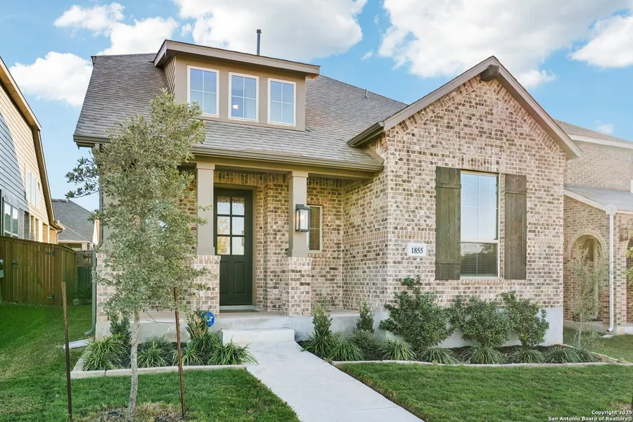 Welcome to 1855 Tornillo Trail, in one of New Braunfels' premier master-planned communities - Veramendi. This home offers the perfect blend of style, functionality, and location, just minutes from shopping, dining, and the charm of downtown New Braunfels. Step inside to find an open-concept layout with soaring ceilings and natural light. The spacious living room features large windows overlooking the backyard and a gas fireplace that creates a cozy focal point for gatherings. The chef-inspired kitchen boasts white shaker cabinetry, elegant quartz countertops, stainless steel appliances, and a five-burner gas cooktop-perfect for everyday meals or entertaining. Retreat to the primary suite, complete with a spa-like ensuite bath and a generous walk-in closet. Enjoy evenings relaxing on your covered back patio, ideal for morning coffee or winding down after a long day. Living in Veramendi me...