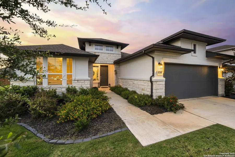 Experience refined Hill Country living in this exceptional single-family home located in the sought-after Meyer Ranch community of New Braunfels. Encompassing 2,396 square feet, this 4-bedroom, 2.5-bath residence showcases an open-concept design with soaring ceilings and abundant natural light, creating a bright and sophisticated atmosphere. The expansive living area is highlighted by a striking gas fireplace, seamlessly flowing into a chef-inspired kitchen featuring a walk-in pantry, breakfast bar, vent hood, and extensive counter space-ideal for both entertaining and everyday living. A thoughtfully designed flex space offers versatility for a private home office, playroom, or additional lounge area. The primary suite provides a serene retreat, while secondary bedrooms are generously sized with quality finishes throughout. Recent enhancements include a new water softener, custom blinds ...