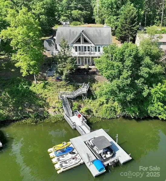 Custom built home offers serene setting for relaxing lake living! Spacious 1 level home with finished basement that overlooks a wide deep cove on Badin Lake. Open main level living that overlooks the beautiful lake with primary bedroom with master bath. Open family area to kitchen with breakfast area and bar that also has a breathtaking view of the lake. Dining room or Office on main level... you choose! Basement offers 2 bedrooms with Jack and Jill bath, theatre room/bonus room, large bonus room with a view of lake, plus another full bath. Paint and flooring was updated 3 years ago. Boat Slip with 4 jet ski docks and ladder, level 2 charging available for electric vehicles. Whole house fiber internet available. This home has it all!