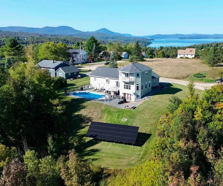 Views, Views, Views! See Willoughby Gap from your in-ground heated pool, powered by an electric heat pump and a 9.6 kW DC ground-mounted solar array (owned outright, 2022 install). $35+/- average monthly electric bill for entire property. Too many features to list. This is a must-see home! 80 Roberge St in Memphremagog Views is a with a 2-story addition, featuring 4,250+ SF of home with over 4,000 SF finished, and 3-car garage. Sits on a double lot totaling 1.1 acres. Expansive views looking out over South Bay of Lake Memphremagog towards the Willoughby Gap. 5 beds, 4 baths (3 full, 1 half), The main floor features a beautiful great room, eat-in kitchen/dining/den w/island, formal dining room w/outside deck, bedroom, full bathroom, and large mudroom. Formal dining flows into the great room which is the main level in the addition. Primary bedroom suite sits above the great room and features exposed beams, vaulted ceilings, whirlpool tub, walk-in closet, large bathroom, and a private balcony with incredible views. The rec room/wet bar is the lower level in the addition; 3-tap insulated keg room, 1/2 bath, wooden bar and stools included, pellet stove, walks out to patio/grill area with fire pit. Basement also includes 3 bedrooms, full bath, laundry, den. The backyard features a fully fenced in-ground heated pool, large patio, multiple gathering areas. Very well maintained and landscaped.