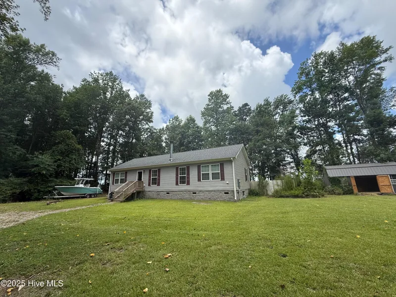 Almost one and a half private wooded acres in a waterfront community between Havelock & 15 minutes from Beaufort! Built in 2019, this home has an open layout, wood burning fireplace, gas stove, stainless appliances, tray ceiling, big island, huge mudroom and huge walk in closets in both bedrooms. Master has double sinks & a large step in shower. Jack & Jill bathroom for guests. Graceland barn included!! Community offers marina, deep water slips, pool, boat ramp, playground, tennis courts, store, & gas + diesel pumps!! Book your showing today!!!
