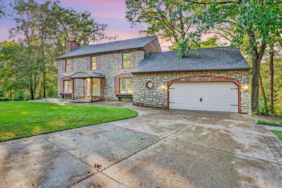 Tucked away on a quiet cul-de-sac, this gorgeous stone two-story with a walkout basement sits on just over an acre surrounded by mature trees, offering privacy, charm, and space to truly breathe. From the moment you pull up, the stone and brick exterior, custom woodwork, and warm lighting set the tone for what's inside. Step through the front door and you're welcomed by bright, open living spaces filled with natural light and beautiful updates throughout. The living room feels cozy and inviting with its wood-burning fireplace, while the kitchen steals the show with rich custom cabinetry, granite counters, stainless steel appliances, and a walk-in pantry that make it both functional and stunning. The main-level primary suite is its own retreat, complete with a private sitting area and access to the deck overlooking the trees, perfect for your morning coffee. Upstairs, you'll find three sp...