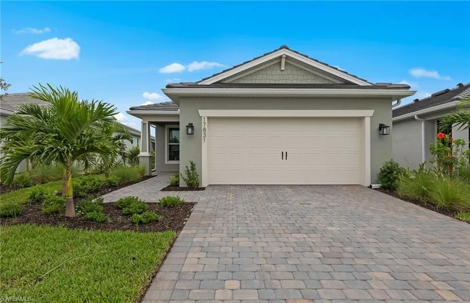 Brand new construction home, available now! This Contour home features 2 bedrooms, 2 baths, den, and 2 car garage. Enjoy cooking with stainless steel appliances. This home has white wood cabinets, custom stylish backsplash, quartz countertops, 8' doors, dropped soffit at owners suite, 22x22 tile flooring throughout, walk-in shower at owners suite and secondary bath, Impact glass, smart home package, and cabinets in laundry room. Gathering room has a sliding glass door to an extended covered screened-in lanai. Oak Creek is Del Webb's newest 55+ community, situated in North Fort Myers. Homeowners will benefit from it being a natural gas, gated community with vacation-inspired amenities such as a resort style pool and spa, clubs and activities, a restaurant and covered Tiki, and a fulltime lifestyle director. Just beyond the gates homeowners can find shopping and dining, explore Fort Myers River District, relax on the Gulf Coast beaches, and experience new recreational activities while still being only minutes from everyday conveniences.