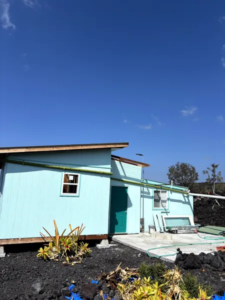 Take in expansive ocean views and breathtaking sunsets from this one-acre off-grid retreat. With approximately 705 square feet of partially finished living space, this property offers the perfect opportunity to complete the palette and create your own sustainable sanctuary. Designed with eco-conscious living in mind, the home features a powerful 9,000-watt solar system* (110/220 volts), a 5,000-gallon water tank, a 220-volt 1/2 horsepower water pump, a 30-gallon pressure tank, a 40-gallon propane tank, and a 110-volt UV water purification system-laying the groundwork for a self-sufficient lifestyle in harmony with nature. Includes a full functioning bathroom with a shower, toilet, and sink, newer model appliances to include a full-size refrigerator, freezer, washing machine, gas heater for cooler nights, coffee maker, gas stove/oven with pancake griddle, and a 70" Samsung flat-screen TV-everything you need to live comfortably while building your dream home at the rear of the lot. The parcel has been cleared and features a driveway leading to the back, where a homesite awaits. In the front, a charming grove of mature Ohia trees has been preserved in a natural kapuka-perfect for a shaded picnic area or peaceful retreat. If you plan to build a permitted home, SSP is available for just $1,469.