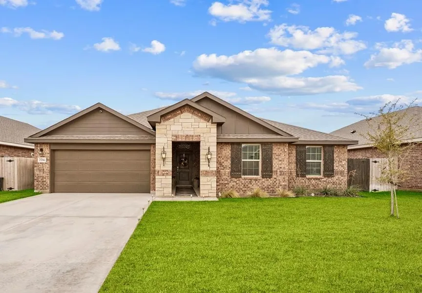 Better than NEW! This gorgeous 2024-built 4 bed/2 bath home is loaded with upgrades! Enjoy the open floor plan featuring a large living area, dedicated dining space and a kitchen featuring white cabinets, granite counters and stainless steel appliances. There is also a bonus flex room off the living area. The primary bedroom is sequestered with a spacious bathroom and double closets! The backyard is fully landscaped with an extended patio and sail system cover and storage building. See it soon!