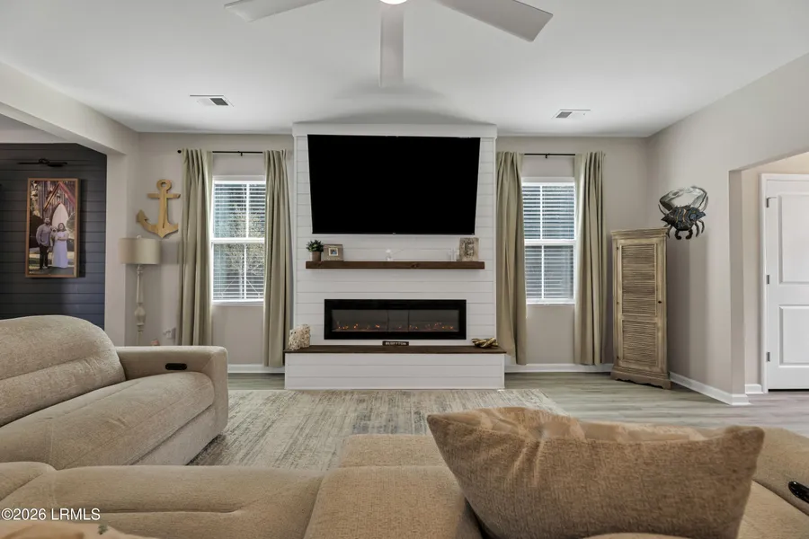 4-bedroom coastal home on a corner lot in charming River Oaks, located down quiet Cherry Point Road near Okatie Elementary. This property offers custom upgrades not found in new construction, including a shiplap fireplace, accent walls, and custom lighting. The floorplan features a spacious loft and a massive walk-in pantry with room for a freezer. Storage is abundant with many closets and a 2-car garage. Outdoor living includes an expansive front porch for sunsets and a screened back porch overlooking a private, fenced backyard. Rare parking capacity for many vehicles between the garage, driveway, and front spaces. Conveniently situated for an easy commute to Bluffton, Beaufort, Hilton Head, and Savannah. This move-in-ready home combines custom character with a prime location.