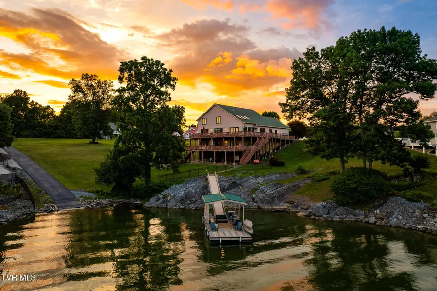 Perched in the prestigious Widner's Point community on South Holston Lake, this custom-crafted estate offers over 8,000 total square feet, with 6,000 finished, and embodies luxury lakefront living at its finest. Perfectly situated at the end of a cul-de-sac, this exceptional home captures panoramic lake views and features a private dock equipped with power, water, lighting, an ice machine, a refrigerator, and a ceiling fan-ideal for effortless entertaining on the water. Immediately adjacent to the home is a ramp for easy boat access. The main chef's kitchen opens into a spacious eat-in area and connects to a separate formal dining room. Just beyond, a solarium or a sommelier's nook, offers million-dollar views of the lake. Stunning tongue-and- groove wood ceilings crown the fourth floor which creates a multi-level open environment from the third floor through soaring vaulted ceilings. With four bedrooms and potential for six, the home offers exceptional flexibility. The primary suite is a true retreat, featuring serene lake views, a huge walk-in closet, spa-like bath, an in-suite sauna, and an electronic fireplace. Outdoor living is unparalleled with two expansive composite decking balconies with concrete-anchored posts, a 5-foot fenced backyard, and two driveways leading to two separate garages for easy guest access. The lower level presents an expansive environment featuring a private bar, culinary area, and billiards room, all highlighted by imported hand-made terracotta flooring from Mexico. This space adds more functionality with a full second kitchen for guests or multigenerational living. This is a rare opportunity to own one of Abingdon's most iconic lakefront estates-where craftsmanship, comfort, and unmatched views come together in perfect harmony. Charming, historic Abingdon invites you to the state's Barter Theater, Martha Washington Inn and Spa, and the Creeper Trail. Buyers and Buyers agent to verify all information.