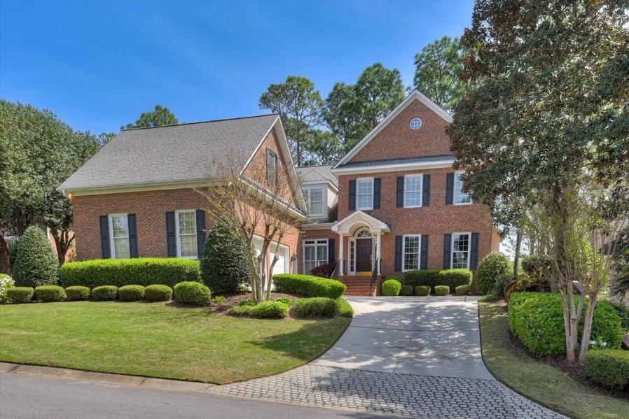 Nestled in the heart of Woodside's prestigious Charles Towne Place neighborhood, this exceptional brick residence is surrounded by a refined collection of Georgian and French Provincial-style homes, offering a sense of timeless elegance. Recent updates include beautifully refinished hardwood floors throughout, including new flooring in the spacious primary suite. The kitchen has been thoughtfully updated with sleek stainless steel appliances, striking quartz countertops, new cabinetry, and modern hardware, while new lighting adds a fresh touch to the space. Additional enhancements include a new quartz sink and countertops in the laundry room and powder room. This meticulously maintained home boasts four generously sized bedrooms, three full bathrooms, and two powder rooms. The main-floor primary suite, with its serene views of the golf course, offers dual walk-in closets and a spa-like bath with new dual vanities, lighting, cabinet hardware, a walk-in shower, and a deep soaking tub. Upon entry, you're welcomed into a grand study featuring a coffered ceiling and beautifully stained wainscoting, setting the tone for the level of craftsmanship throughout. The formal dining room, with its exquisite trim work, flows seamlessly into the great room, where a gas fireplace with custom built-ins creates a warm, inviting atmosphere. French doors lead to a brick patio, enhancing the living space and providing access to the landscaped backyard. The kitchen and breakfast room open onto a charming, screened porch with brick flooring, leading to the patio and offering scenic views of the lush yard and the 10th hole of the renowned Jones Course. The main floor also includes two powder rooms, one off the foyer and another off the kitchen for added convenience. Upstairs, three spacious guest bedrooms offer ample closet space and comfort, with one featuring its own en-suite bath and the other two sharing a stylishly appointed Jack and Jill bath. For those seeking additional living or work space, a private staircase from the laundry and mudroom leads to a versatile bonus room, perfect for a home office, studio, or hobby room. The bonus room also provides access to additional floored attic storage. The beautifully landscaped yard is a true sanctuary, with mature azaleas and lush greenery creating a peaceful outdoor retreat. The home also benefits from updated HVAC systems (2024), ensuring year-round comfort and efficiency. Residents of Woodside enjoy access to over 15 miles of walking trails, scenic green spaces, and the exclusive opportunity to join either The Woodside Plantation Club or The Reserve Club. Both clubs offer exceptional amenities including golf courses, tennis, pickleball, swimming pools, dining, and a host of social activities. Conveniently located near shopping, dining, and the charming downtown area of Aiken, this home provides the perfect blend of luxury living and community convenience.
