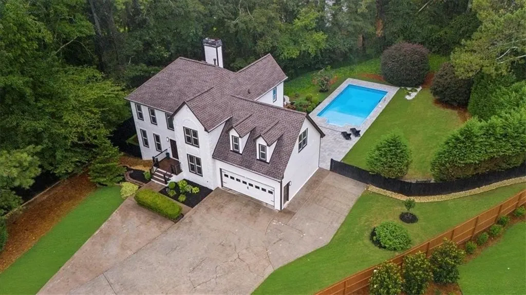 Fresh Renovated Smart Home in Prime Alpharetta Location. Presenting a stunning 6-bedroom, 4.5-bathroom home with the perfect combination of luxury, technology, and convenience-just minutes from downtown Alpharetta and Avalon in a top-rated school district. Nestled in a quiet cul-de-sac on a spacious 2/3-acre lot, the property features a private oasis offering an inground pool, serene pond with waterfall, and ample space for outdoor enjoyment including a playground for the kids. The pool has new beautiful large pavers extending to a great entertainment area for lounging and outside dining. This home is truly like a new home with a well thought comprehensive renovation. Inside, you'll find a freshly remodeled interior with an open modern layout and top-quality finishes. The smart home system connects to Wi-Fi and controls smart light switches, exterior wall lighting, kitchen appliances, thermostats, a whole-home generator for peace of mind, and pool water quality monitoring-all from the convenience of your phone. If you want a home that has most everything this is your home. Walking through the doors you will notice the new beautiful hardwood floors, lighting, hardware, waterfall quartz countertops, and so much more. The home has had exemplary care providing new paint inside and out, newer windows, new roof, transferable termite letter, new AC Heat pumps. The in-law suite on the terrace level offers 2 bedrooms with ensuite full baths, laundry room, kitchenette and outside entrance. Large parking pad can accommodate an RV/Boat. Extra large workshop with heat and air. A separate storage shed for your pool toys. This is more than a home-it's a lifestyle of comfort, security, and smart living in one of Alpharetta's most desirable areas.