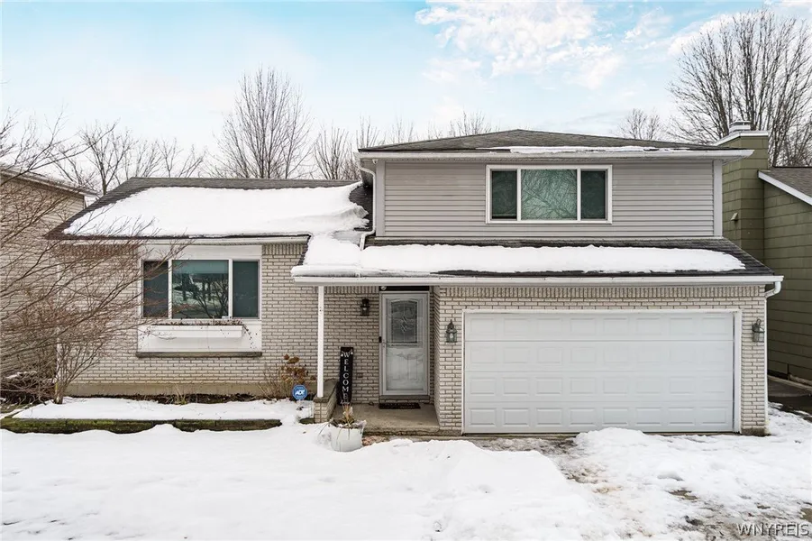 Welcome to 92 Sunset Court, a beautifully updated split-level home offering modern luxury, thoughtful design, and a peaceful setting in the highly rated Sweet Home School District. Contemporary brick-front covered entry leads to welcoming foyer with custom coat rack, bench, and storage. Spacious living room features a large picture window and flows seamlessly into the open-concept kitchen and dining area. In the kitchen you will find soft-close maple cabinetry, granite countertops, breakfast bar, stainless steel appliances, pantry, under-cabinet lighting, and tile backsplash with glass mosaic accents. Kitchen and dining area also boast tile flooring with radiant heat. Inviting family room offers recessed lighting, crown molding, gas fireplace, and an included home theater system featuring a high-definition projector, motorized recessed 110" screen, and surround sound, creating a true cin...