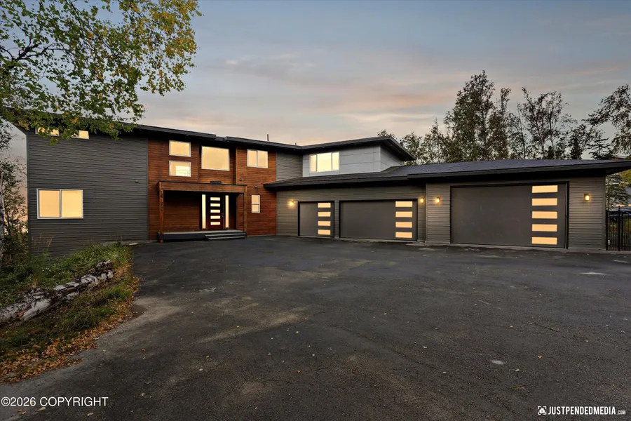 Enjoy year-round sunsets and even the northern lights from one of the expansive west-facing decks with unobstructed views of the inlet and city skyline. This exceptional retreat offers 6 bedrooms, 5.5 bathrooms, more than 5,500 sq. ft. of living space, an 1,800 sq. ft. garage, a full mother-in-law apartment, and over an acre of beautifully manicured grounds. The main level welcomes you with vaulted ceilings, a powder room for guests, and a grand living room with floor-to-ceiling windows that frame the views. A cozy bonus room with a gas fireplace and a dining area with dual sliding doors open to a deck stretching the entire length of the home. The chef's kitchen features a massive 10'x6' granite island, double ovens, stainless steel appliances, a walk-in pantry, and abundant cabinetry. A spacious mudroom with custom built-ins connects to the oversized 1800 sq. ft. garage, designed for all your vehicles and Alaskan toys. A generous guest suite with a full bathroom completes the main floor. Upstairs, the primary suite offers a private balcony, a spa-like bathroom with dual sinks, a soaking tub inside the oversized tiled shower overlooking the ocean, a separate toilet room, and a custom walk-in closet. Also on this level are two incredibly large bedroom suites with attached baths, custom walk-in closets, and breathtaking views. A hallway wet bar for morning coffee or a midnight snack, a huge laundry room with built-ins, and thoughtful storage add comfort and convenience to complete the upstairs. The lower level features a sprawling mother-in-law apartment with its own custom kitchen, dining area, living room, full bath, laundry room, storage and two bedrooms. Outdoors, enjoy a fenced yard, a landscaped lower field perfect for soccer games or block parties, and a large shed for tools and equipment. Experience fine hillside living with unmatched views- without the restrictions of an HOA. Welcome Home!