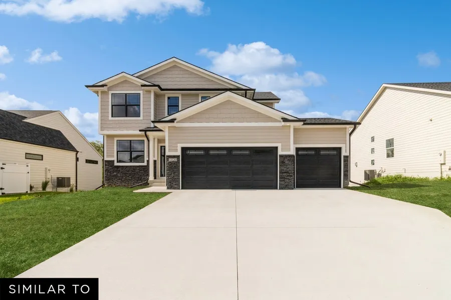Welcome to the Kingston plan by Jerry's Homes. This 4 bedroom, 2-story home boasts over 2,100 sq ft finished. Style meets function with an open floor plan kitchen featuring Colada cabinets, quartz countertops, tile backsplash, and GE stainless steel appliance package. The convenient corner pantry and large island make for the perfect entertainment setting. The main floor has LVP flooring and a great room featuring a gas fireplace surrounded by floor-to-ceiling stone. Large windows bring in plenty of natural light to the living space. Separate den on the main floor is perfect for working at home or additional living space. Large covered deck for your outdoor enjoyment is accessed from the dining area. All 4 large bedrooms are on the upper level, including a spacious primary suite with a private bath, double vanities, and a tiled shower. 2nd-floor laundry makes it easy for everyday chores. Notice the attention to detail in design choices down to the durable LP siding, black hardware and plumbing fixtures and black framed windows on the front elevation. Mudroom and 3car garage offers plenty of room for storage and organization. The lower level can be finished as you wish and is also stubbed for a future bath. Home warranty included. North Polk or Ankeny schools .