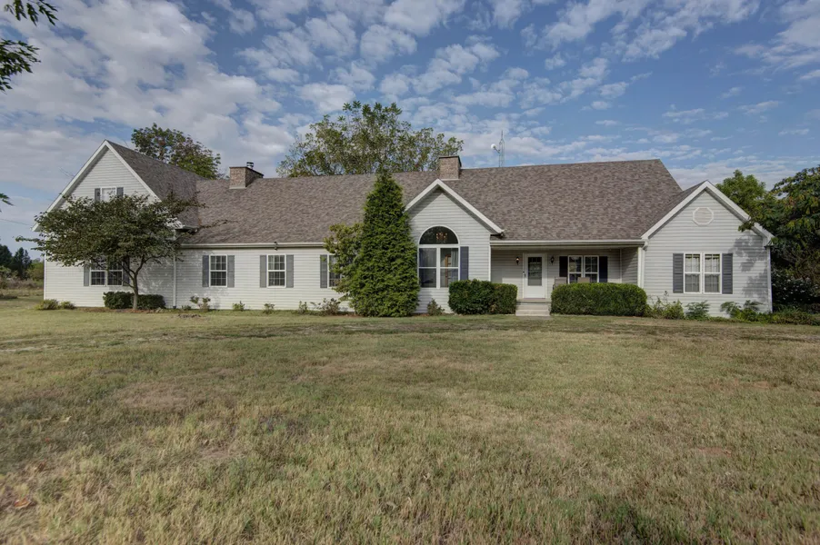 OPEN HOUSE SAT. 1/31 2:00-4:00!Welcome to your own private retreat on nearly 5 acres!This stunning 3-bedroom, 4.5-bath home offers over 3,200 square feet of living space, a spacious 3-car garage, and room to spread out!From the moment you walk inside, you'll be impressed by the soaring ceilings, exposed beams, and the incredible floor-to-ceiling stone fireplace in the open living area. Just off the entry is a formal sitting room, perfect for entertaining or quiet mornings with a cup of coffee. The kitchen is a cook's dream, featuring granite countertops, an expansive island with seating, and stainless steel appliances. Every bedroom includes its own ensuite bath, and the oversized owner's suite is a true retreat--with a walk-in tiled shower, soaking tub, and double walk in closets. Need an extra room? There is a non-conforming space that could easily serve as a guest room, office, or bonus room. Multiple porches around the home invite you to relax, take in the views, and enjoy the peaceful surroundings. As a bonus there is an in ground tornado shelter professional installed in the garage floor for easy access, plus a 45'x55' barn with electricity and partial concrete floors. This space is something you will want to see!