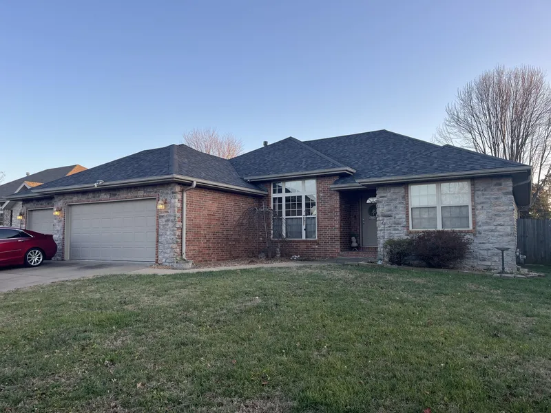 Beautiful ranch-style home located in Meadow View Estates in Battlefield just minutes away from Springfield! Built in 2004, this well-maintained property features a brick and stone front, brand-new roof, and newer HVAC. Inside you'll find a formal dining area, spacious great room, and ample counter space in the open kitchen (refrigerator included). Split-bedroom floor plan with a primary suite offering double vanity, jetted tub, walk-in shower, separate closets, and private lavatory. Two secondary bedrooms and full bath are on the opposite side. Enjoy the covered patio overlooking a fully privacy-fenced backyard. Extra concrete pad and storage shed are located behind the three car garage. Situated on a nice size lot with easy access to James River Expressway and located in the McBride/Wilsons Creek, Cherokee, and Kickapoo school districts.