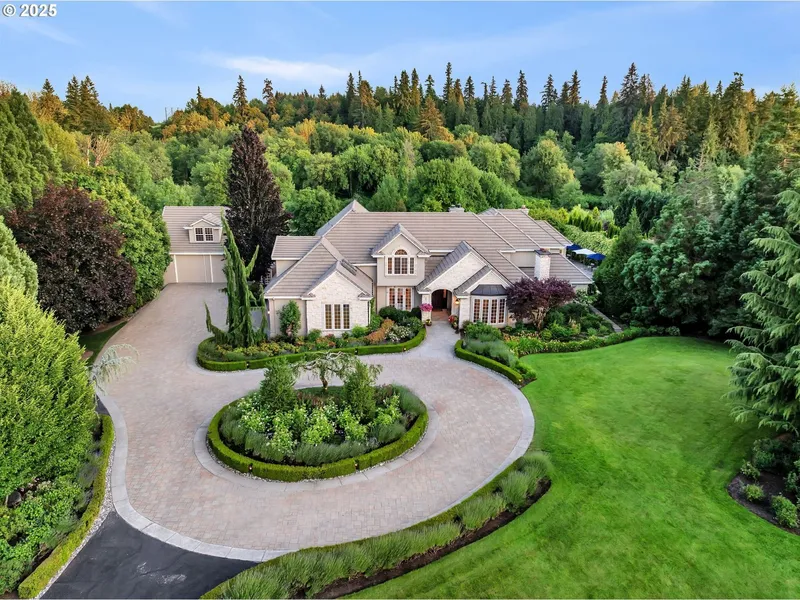 Welcome to the best of Northwest living in this exceptional 5-acre estate, custom-built and lovingly maintained by its original owner in the gated Salmon Creek Woods community. Surrounded by lush landscaping and breathtaking territorial views, this home combines timeless design with modern updates throughout. A grand entry with curved staircase and hardwood floors leads to a vaulted great room with beamed ceilings, stone fireplace, lighted built-ins, and expansive windows. The gourmet kitchen features high-end appliances, slab granite and quartz counters, custom cabinetry, and a hidden walk-in pantry. The main-level suite with private entrance, living area, full bath, fireplace, and patio access is ideal for multigenerational living or ADU potential, with space plumbed for a kitchenette. Upstairs, the primary suite includes a gas fireplace, two walk-in closets, a spa-like bath, and priva...