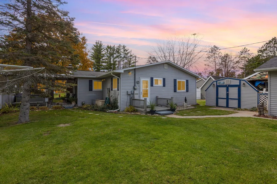 Waterfront Living on Wixom Lake - Move-In Ready with 70' of Canal Frontage! Welcome to this charming home in desirable Kimberlee Pines, featuring 70 ft of canal frontage with a steel seawall and wood boardwalk-perfect for relaxing, fishing, or boating when the lake returns (restored in 2028). Enjoy a 2-car garage, large Amish-built shed with electric, and a second powered shed for your toys. Relax on the covered patio wired for a hot tub or on the paver patio for outdoor dining. Inside offers cedar and knotty pine finishes, a gas fireplace, primary suite with walk-in closet, and updates including a 2017 furnace, A/C, Generac generator, and 5'' well. Spectrum Internet available. Ideal for year-round living or weekend escapes!