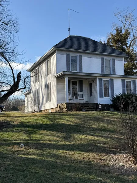 Let's talk about country charm... This quaint home has all the feels! Covered front porch for coffee sippin'. Cozy LR with fireplace, a separate dinning room, kitchen with a mini bar, and a mud room for those messy boots or school backpacks. A bedroom - or office space, bathroom and laundry room round out the main level. The upstairs has a full bath and 3 bedrooms. All rooms have a nice view of the outdoors. The basement entry is outside and can be used for a storm shelter or storage. The HVAC, well pressure tank and water filtration system are located here as well. Lets talk about the outside buildings! The gazebo has relaxation written all over it. Peaceful setting overlooking open land. The main shop is 32 x24 and is insulated, heated, can be cooled with window unit, and has electricity with 2 garage door openings. The next building has 3 overhead garage door openings is 36 x 24 and a...