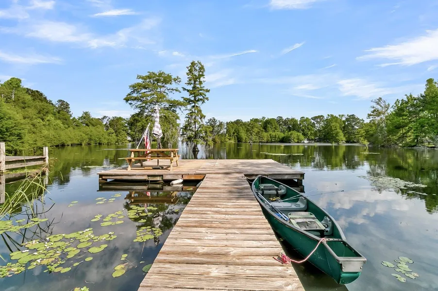 A Million Dollar View for Under a Million! LAKE MOULTRIE LAKEFRONT! Experience the timeless beauty of this intimate cove tucked serenely within majestic Lake Moultrie in Berkeley County. This rustic lakefront home offers the epitome of lake living with seasonal water lilies, irises, and more lining the private dock walkway to your secluded fishing and kayaking outings any time of day. Three neighborhood launches conveniently accommodate your boat trips on the 60,000-acre Lake Moultrie -- with both Waterfront - shallow and Waterfront - deep access, opening the door to a wider range of lake enthusiasts and buyers seeking diverse waterfront experiences. Whether you're watching the sunrise over the lake or enjoying a peaceful evening paddle,this waterfront property delivers the dream of serene lake life. As you approach the home, a wood rail fence, mature trees and flowers, expansive yard, a...
