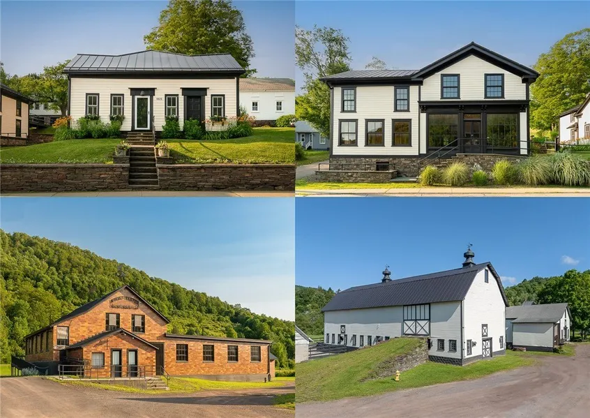 A rare opportunity in the village of Bovina Center, NY. A turnkey Inn/B&B thoughtfully renovated adjacent to a 'blank canvas' storefront building awaiting its next venture with tremendous potential as a restaurant space. A Carriage house apartment is also on the North side of Main St. resting on 8.5 acres. Additionally, a former dairy processing facility & farm is located on the south side of Main St. A total of 57+ acres set in a pristine valley with deep agricultural roots. The 'Creamery Building' has undergone an extensive renovation with state-of-the-art dairy processing for butter, cheese, milk and yogurt. An incredible opportunity for an agri-tourism business with farming and production. Or, harness the past use of the building and create a one of a kind brewery/distillery. Enter a gift shop/reception that leads to an observation deck of the processing floor. The facility was once used to pasteurize and bottle milk, churn and mold butter, produce and package yogurt and make a variety of cheeses but is open to endless potential. The building was fully restored and updated with a standing-seam roof, new heating and cooling systems. The property also includes a renovated milk barn, carriage house with hand-hewn beams and multiple buildings for dry storage and future expansion. Finally a new bridge over the Brush Brook connects to an additional 44+ acres and a beautiful river walkway.