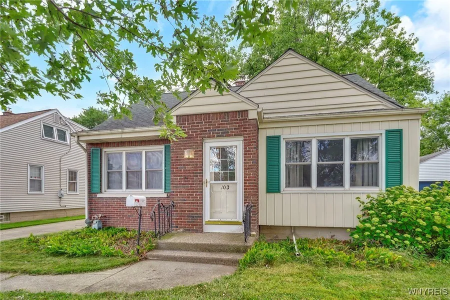 Welcome to 103 Chaplin Drive, a delightful cape cod-style home nestled in the heart of the Town of Tonawanda. This versatile 3-bedroom, 2-bath residence offers spacious rooms and flexible living arrangements, easily functioning as either a ranch-style or two-story home to suit your lifestyle. Step inside to a warm foyer leading to a formal living room and dining area, both featuring cozy wall-to-wall carpeting. The eat-in kitchen, separated by a charming French door and complemented by a built-in butler's space, invites culinary creativity and casual dining. Conveniently located on the first floor are a bedroom, full bath, and a mudroom at the rear entrance. Upstairs, two generous bedrooms with expansive walk-in closets and a second full bath provide comfortable private spaces. Enjoy modern comforts with newer vinyl replacement windows and an efficient air conditioning system. The spacious basement offers abundant storage and potential for future living space expansion. Outside, a fully fenced rear yard ensures privacy, while mature shade trees and a detached two-car garage enhance outdoor living and entertaining. Complete with all appliances and meticulously maintained, this home is ready for you to move in and make it your own. AC & Furnace 2022. Garage Door 2021. House Roof 2009, Garage Roof 2018. Don't miss your chance to experience this lovely property. Offers will be reviewed as received.