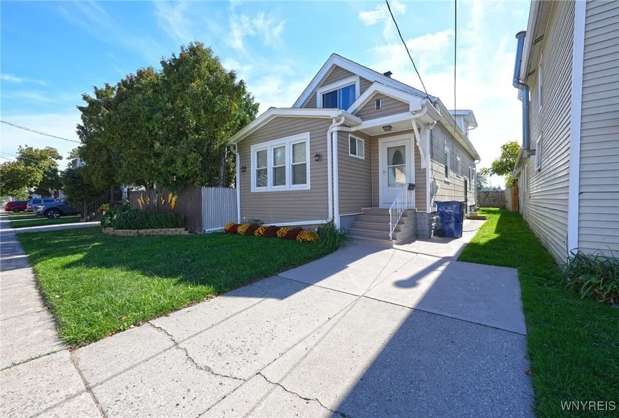 This beautifully updated 4-bedroom, 2-bath home in South Buffalo offers 1,400 sq ft of thoughtfully designed living space with modern upgrades throughout. Step inside to an open-concept main level featuring luxury vinyl tile flooring, while brand-new carpet adds comfort upstairs. The stunning new kitchen is a chef's dream, showcasing butcher block countertops, a barn-style composite sink, all-new stainless steel appliances, stylish lighting, and a spacious walk-in pantry. Both bathrooms have been fully renovated and include spa-style rainfall showers with multi-head body spray systems-your own private retreat. Enjoy the comfort of integrated LED lighting and modern ceiling fans in every bedroom and living space. Major system upgrades include a tear-off Owens Corning Duration roof, extra-wide eaves, commercial-grade 6" gutters, updated electrical and plumbing, newer water heater, sump pump, and a professionally graded backyard that backs to peaceful open fields. Situated on a quiet, tree-lined street just minutes from parks, highways, Tesla, and downtown Buffalo-this home offers the perfect blend of comfort, character, and convenience. Don't miss it! Sq Ft was measured by an appraiser. Offers due 10/22 @5pm.
