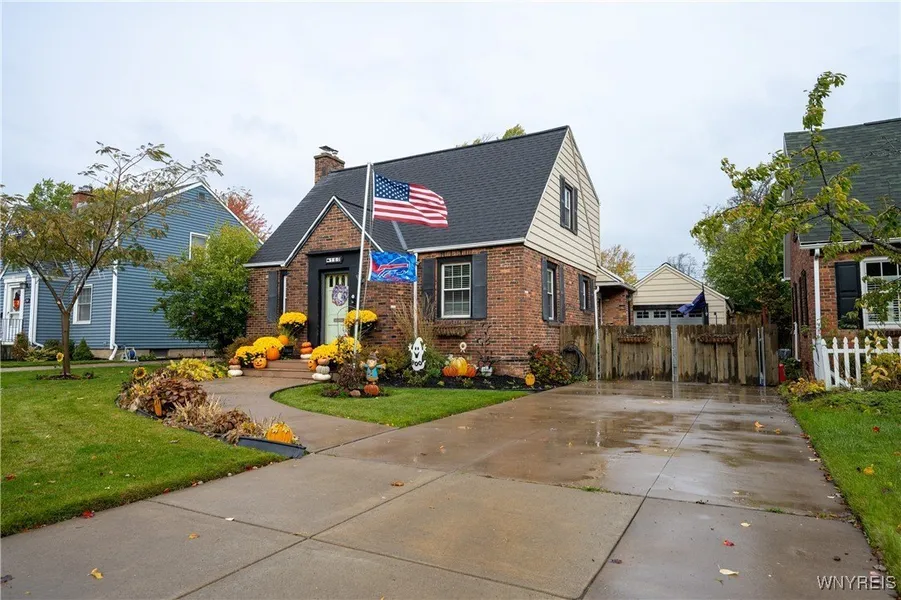 This is truly the one you have been waiting for and shows Pride of ownership . This Tonawanda 2,000+ square foot Cape has an awesome layout with generous natural light throughout. First floor has a modern kitchen with granite countertops and modern appliances. Kitchen counter can be utilized as a breakfast bar & you can dine in a spacious dining room area attached to kitchen. Half bath for your convenience. Large living room with gas fireplace to sit and relax. Huge family room gives you even more space to spread out and enjoy. Family room spills out to a vast deck that overlooks the fully fenced yard and above ground pool with deck. Behind & attached to the single garage is a covered entertainment area/ beer garden for more outdoor fun space. Second floor boasts three excellent sized bedrooms and lots of closet space. Full second floor sizable bathroom. Beautiful hardwood and luxury vinyl floors, updated windows ,arch roof 7-10 years tear off ,basement glass block windows, full basement, backyard shed & newer concrete driveway with ample room for parking. Awesome curb appeal and very desirable neighborhood. This is a must see! Move in ready ! Negotiations start at noon Tuesday November 11th