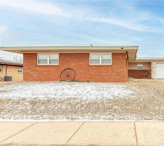 Welcome to this 3-bedroom, 1-bath half duplex offering spacious rooms and a functional layout at 1,246 sq ft. It features laminate, carpet, and tile flooring. This brick home boasts a warm and inviting space for relaxation. Enjoy the enclosed back patio perfect for quiet evenings and family gatherings. The backyard offers safety with an underground storm shelter. The garage was converted for storage or can be used for a workshop. This would make an excellent starter home or rental property.
