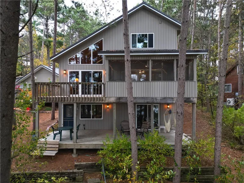 Beautiful 4 bedroom, 3 bathroom lake home with 160 feet of frontage on Prairie Lake, part of the highly sought-after Chetek Chain of Lakes. Enjoy some of the area's best boating, watersports, fishing, and lakeside dining right from your dock. This spacious 4-season home offers multiple levels of living space, perfect for hosting family and friends, with large windows that capture peaceful lake views and natural light throughout. The full basement adds extra room for recreation and storage, while the deck provides a great spot to relax and take in the waterfront setting. A 2-car detached garage heated garage with its own deck plus an additional 1-car attached garage offers excellent space for vehicles, toys, and lake gear. A rare opportunity to own a well-sized lake property in a prime location known for fun, recreation, and year-round enjoyment.