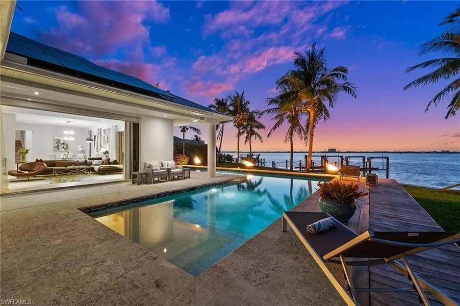 A rare riverfront gem in Cape Coral's best location! Located directly on the Caloosahatchee River with 140 feet of waterfront in a cul-de-sac surrounded by the most stunning multi-million dollar houses, this spectacular estate captures glorious sunrise views every morning. With 4,299 sqft of living space, this home offers 4 spacious bedrooms, 5 full bathrooms, and a versatile den that can easily convert into a 5th bedroom. This property is within walking distance to Cape Coral's beach and Yacht Club, and just minutes from downtown and the Bimini Basin - offering the perfect blend of tranquility and accessibility. Set on one of the largest riverfront lots in Cape Coral, this home provides exceptional space, privacy, and an unparalleled waterfront lifestyle. A beautifully designed two-story home extension added in 2015 includes a private guest suite with its own breakfast bar and breathtaking river views - perfect for hosting or multigenerational living. The rest of the home has been completely remodeled with luxurious finishes and top-tier upgrades throughout. Enjoy the ultimate Florida lifestyle with a heated pool, outdoor kitchen, and gas fire features that create an enchanting riverfront ambiance. The brand-new dock with two 16,000-pound boat lifts is ready for your waterfront adventures. Additional highlights include a new metal roof, solar energy system, hurricane impact windows, Kevlar hurricane shutters, central vacuum system, and an insulated, climate-controlled attached garage with split A/C - ideal for a workshop, gym, or hobby space. This exceptional home offers a rare combination of luxury, location, and lifestyle - the perfect riverfront retreat.