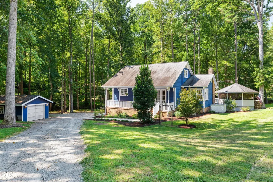 Versatile 3BR/2.5BA home, perfectly situated mere minutes from Chapel Hill, Hillsborough, and Duke. Inside, hardwood floors run throughout the main living areas and bedrooms, complemented by a cozy wood-stove in the living room/dining areas. The kitchen features stainless steel appliances, tile backsplash, granite counters, and a pantry, while the upstairs bedroom is a full private suite with it's own bathroom. Step outside to a 40 x 17 deck that flows into the screened gazebo, complete with a built-in bar and mid-sized refrigerator - ideal for entertaining. The partially finished basement (over 1000 sq ft!) can be accessed from inside or outside, and is ideal for a shop, music/art studio, home gym, or extra living space or storage. Additional perks include a true foyer, rocking-chair front porch, generous circular driveway with ample parking, detached garage shop, shipping crate for additional storage, and an extra shed with a covered parking spot. A walkable bridge connects to the adjoining 0.73-acre lot for added land buffer and opportunity, and conveys with the house parcel, for a combined 1.36 acres. All this in a prime location >> less than 2 miles to Hwy 86, 4 miles to I-40, 2.5 miles to Emerson Waldorf School, with quick access to UNC Chapel Hill, Duke University, downtown Hillsborough, and just 25 minutes to RDU.