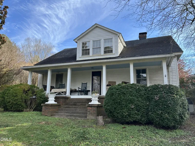 This unique 1932 farmhouse, situated on over two acres just outside Chapel Hill city limits, is a rare opportunity with endless possibilities. Given the property's size and location, it presents an ideal scenario for a permaculture project or the creation of a food forest. The residence itself features four bedrooms and two full baths, a living room with a working fireplace, and a vaulted kitchen with brick flooring. There is also an enclosed sunroom and a classic rocking chair front porch. The property has a two-car detached garage that includes a back studio/workshop space and storage loft. For gardening, there is an in-ground, southern-facing cold frame greenhouse ideal for winter vegetables and spring seedlings. The grounds also feature an old outdoor summer kitchen which was previously used as an artist's workshop. To top things off, there is an old fenced-in plum orchard ready for restoration. The location is exceptionally convenient. It is only a few minutes from UNC Hospital, downtown Chapel Hill, and Carrboro, with Southern Village and its amenities even closer. Furthermore, the property provides easy access to Cole Park Plaza, Fearrington Village, and Pittsboro. RDU Airport is 23 minutes away.